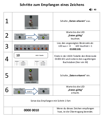 Wenn die Kinder an der Station drei Zeichen in der Minute übertragen bekommen, ist das schon eine hohe Geschwindigkeit.